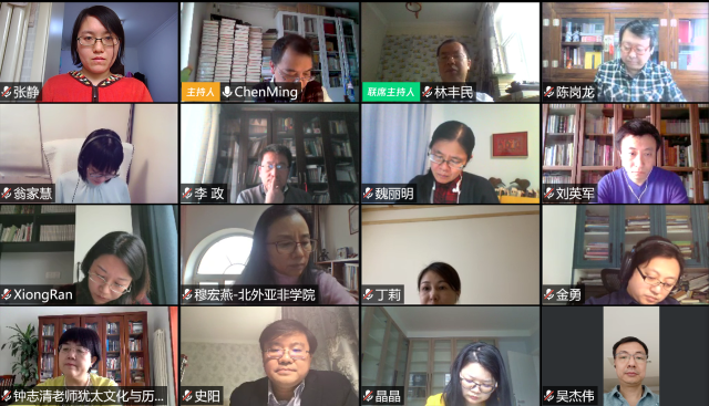 2020年4月18日下午,北京大学东方文学研究中心召开视频工作会议,讨论中心在下一阶段的工作计划。中心主任陈明教授、副主任林丰民教授、中心的骨干成员:北京外国语大学亚非学院地区研究中心负责人穆宏燕教授、中国社会科学院外国文学研究所钟志清研究员、爱体育手机平台李政教授、陈岗龙教授、魏丽明教授、丁莉教授、吴杰伟教授以及来自爱体育手机平台日语系、东南亚系、南亚系、西亚系的青年教师共16人参加了本次会议。会议由林丰民教授主持。
