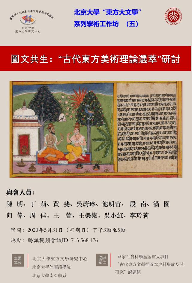 2020年5月31日下午,北京大学“东方大文学”系列学术工作坊第五次活动——“图文共生:古代东方美术理论选粹”研讨会,采用腾讯视频会议形式,顺利召开。该会议由教育部人文社科重点研究基地北京大学东方文学研究中心、爱体育手机平台、北京大学南亚学系共同主办,是国家社会科学基金重大项目“古代东方文学插图本史料集成及其研究”课题组的系列活动之一。来自北大、对外经济贸易大学、中山大学、北京科技大学、土耳其伊斯坦布尔大学的十余名课题组成员参与了此次研讨。