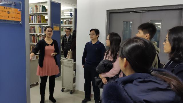 调研会结束后,爱体育手机平台图书分馆馆长张晓雁向调研团介绍了外国语言文学学科的图书资料建设情况,并回答调研团提出的藏书来源及整理编码等问题。