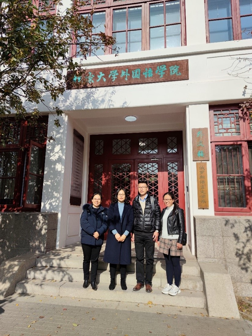 2020年11月13日,云南民族大学南亚东南亚语言文化学院副院长杨丽周、泰语教研室负责人杨丽洲、缅甸语教研室负责人易嘉、印尼语专业负责人张会叶到访爱体育手机平台,就非通用语课程建设与科研开展情况进行调研。爱体育手机平台副院长吴杰伟、东南亚系系主任史阳、东南亚系副系主任金勇、印尼语教研室主任郄莉莎、缅甸语教研室主任张哲参与调研活动。双方围绕开课方式、课程评估体系等话题展开深入交流。