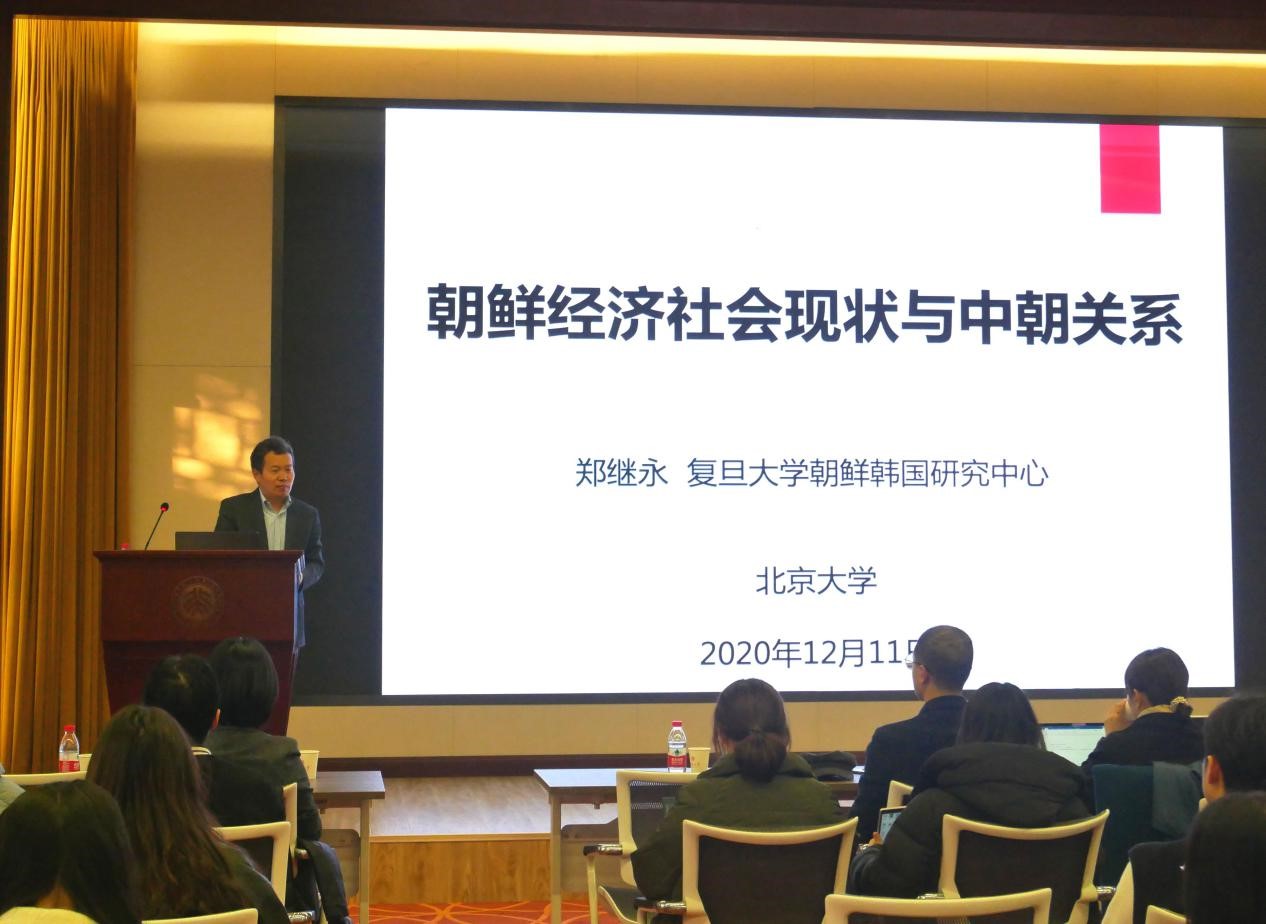 2020年12月11日,爱体育手机平台朝鲜(韩国)语言文化系主办的第五十二次“感知韩国系列文化讲座”在民主楼208会议室举行。本次讲座的主题为“朝鲜社会现状与中朝关系”,主讲人是复旦大学国际问题研究院郑继永教授。朝(韩)语系主任王丹教授等系内师生五十余人和延边大学朝鲜韩国研究中心的两位老师到场聆听了讲座。