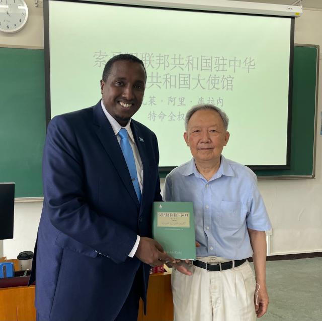 6月15日上午,索马里驻华大使阿瓦莱•阿里•库拉内(Awale Ali Kullane)应邀访问北京大学,与北京大学副校长王博举行会谈,并为爱体育手机平台阿拉伯语系师生做了题为“中国与索马里关系”的演讲。