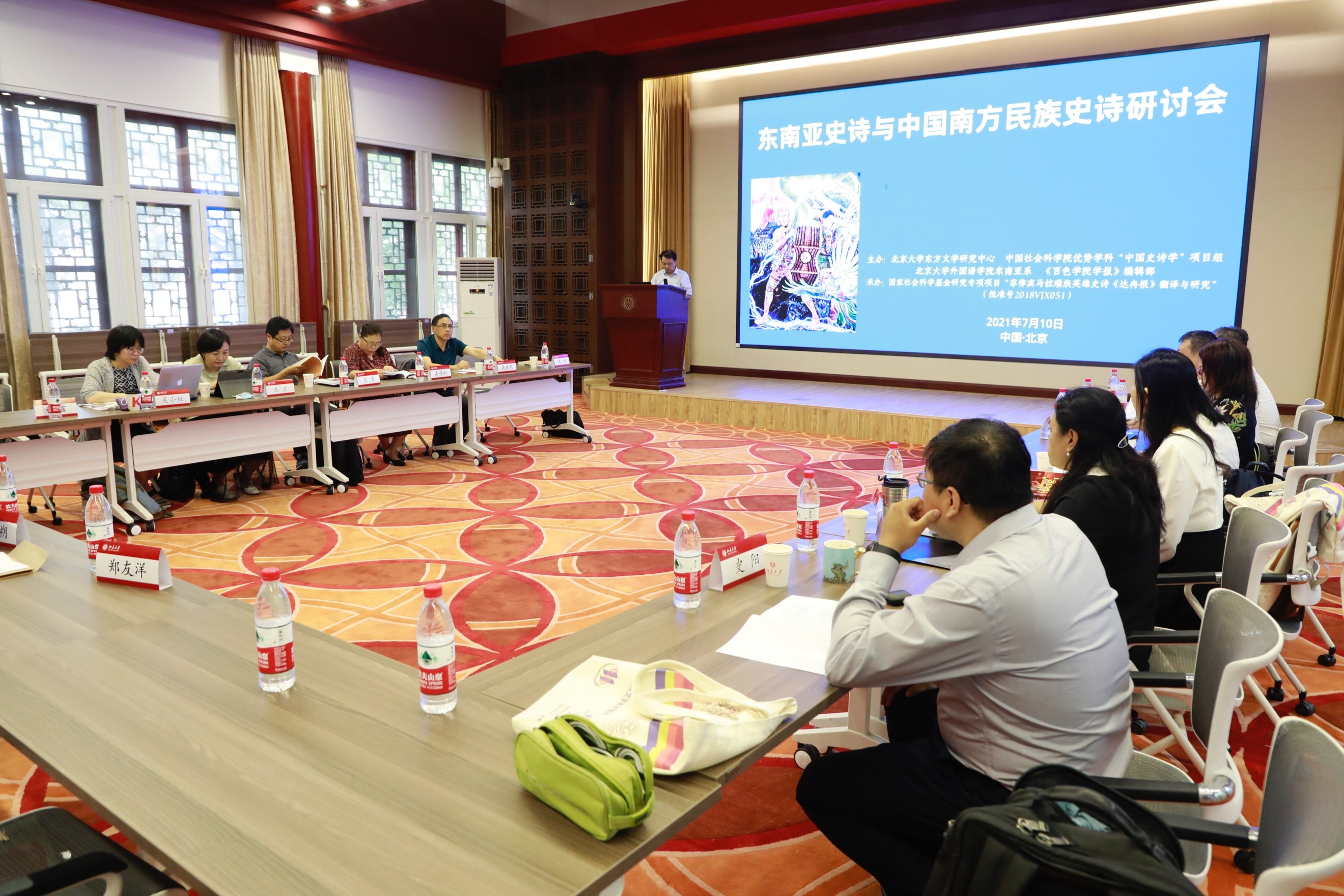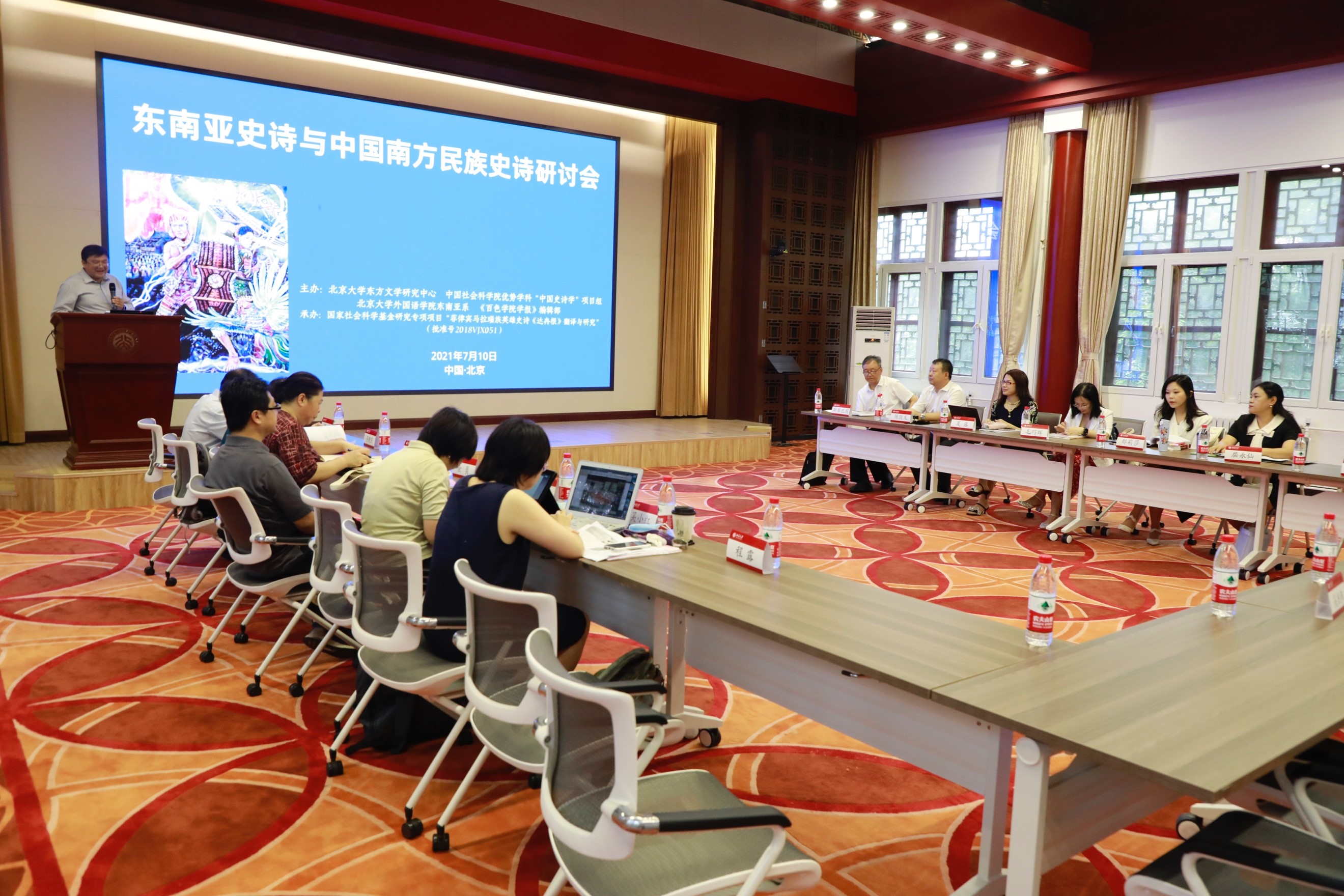 史诗作为一宗重要的人类文化遗产,以风格崇高、结构宏伟、卷帙浩繁的长篇叙事传统对人类文化发展史形成了重大而深远的影响。2021年7月10日,由北京大学东方文学研究中心、中国社会科学院民族文学研究所主办,爱体育手机平台东南亚系、《百色学院学报》编辑部承办的“东南亚史诗与中国南方民族史诗研讨会”在北京大学以线下、线上同步进行的方式召开。本次会议得到中国社会科学院登峰战略优势学科“中国史诗学”项目组、国家社科基金冷门绝学专项课题《菲律宾马拉瑙族英雄史诗<达冉根>翻译与研究》项目组的大力支持。来自北京大学、中国社会科学院、云南社会科学院、《百色学院学报》的专家、学者们汇聚一堂,就东南亚史诗与中国南方民族史诗的诸多问题展开了深入讨论和交流,北京大学东方文学暑期学校学员也积极在线观摩,实时在线人数达260余人。