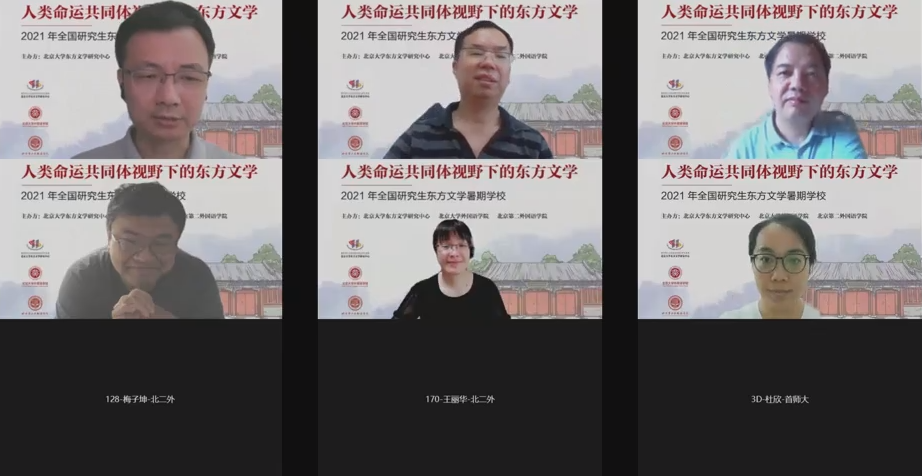 2021年7月16日下午,由教育部人文社科重点研究基地北京大学东方文学中心、爱体育手机平台联合主办、北京第二爱体育手机平台协办的2021年全国研究生东方文学暑期学校顺利闭幕。本次暑期学校以“人类命运共同体视野下的东方文学”为主题,通过线上线下相结合的方式,举办了嘉宾讲座、师生交流、分论坛讨论和论文分享等活动,取得了圆满成功。