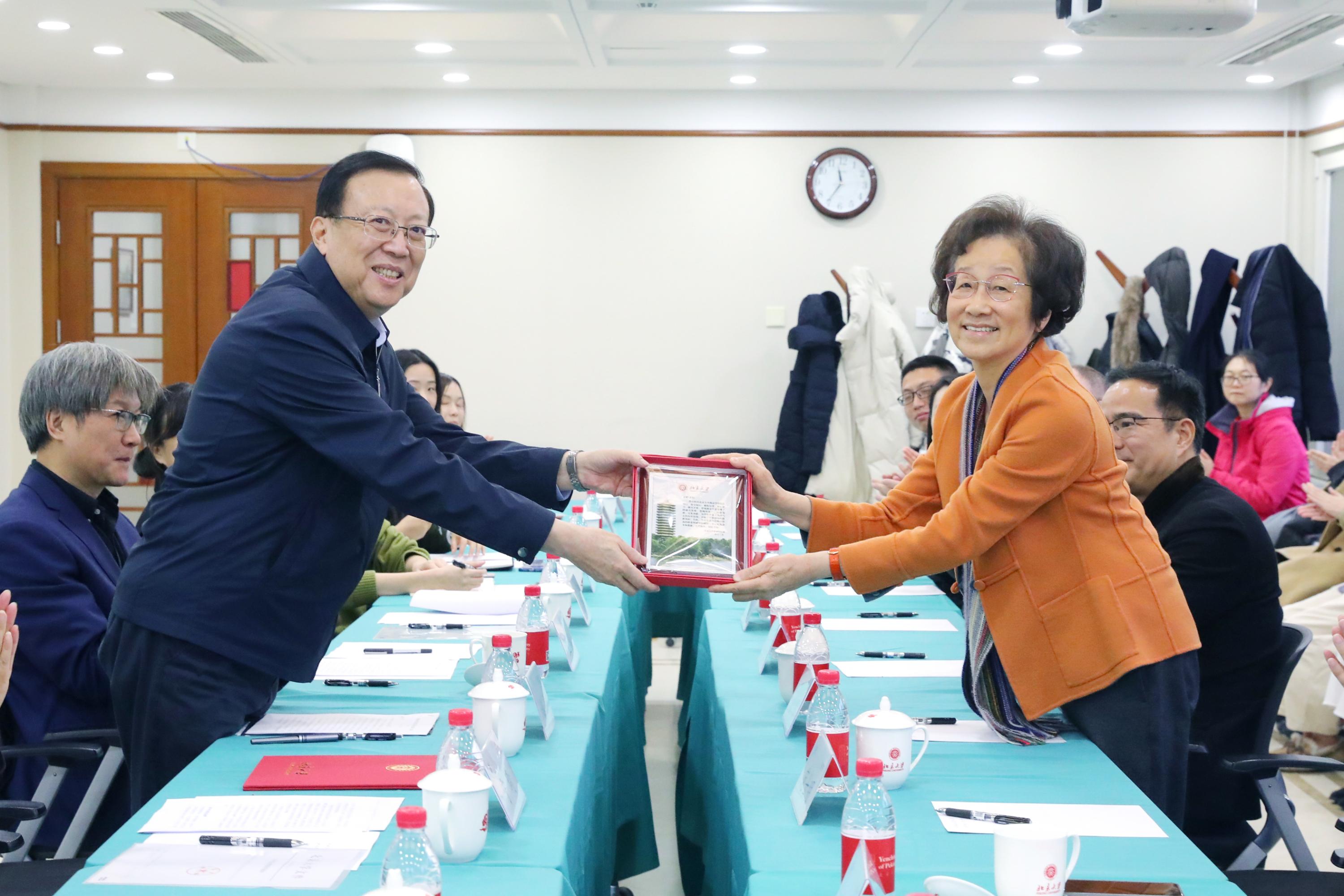 郝平校长对袁明教授为燕京学堂和北京大学的付出与贡献表示高度赞赏。他回忆了自己多年来与袁明教授共事和交往的经历,表达了对袁老师的敬重、感谢与不舍,并且希望袁老师在未来能够继续关心、支持、参与燕京学堂的工作。他表示,董强教授在国际上拥有很高声誉,他接任燕京学堂院长是学校慎重考虑后作出的决定。范士明教授十分了解学堂发展情况,在行政管理方面非常扎实,由他担任办公室主任,与董强教授配合相得益彰。郝校长希望两位老师和学堂全体员工能够不负众望,将燕京学堂这一品牌保护好、发展好,让学堂继续蓬勃发展、蒸蒸日上。